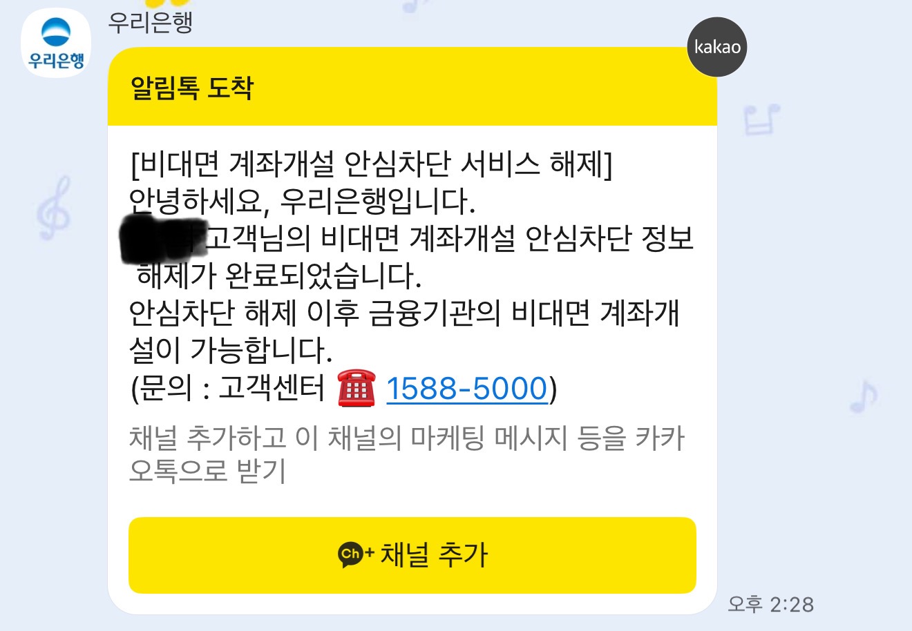 👉 저처럼 비대면계좌개설 안심차단 서비스를 가입하신 분들은 반드시 영업장 방문이 필요하다는 점 참고하시면 좋겠습니다.
