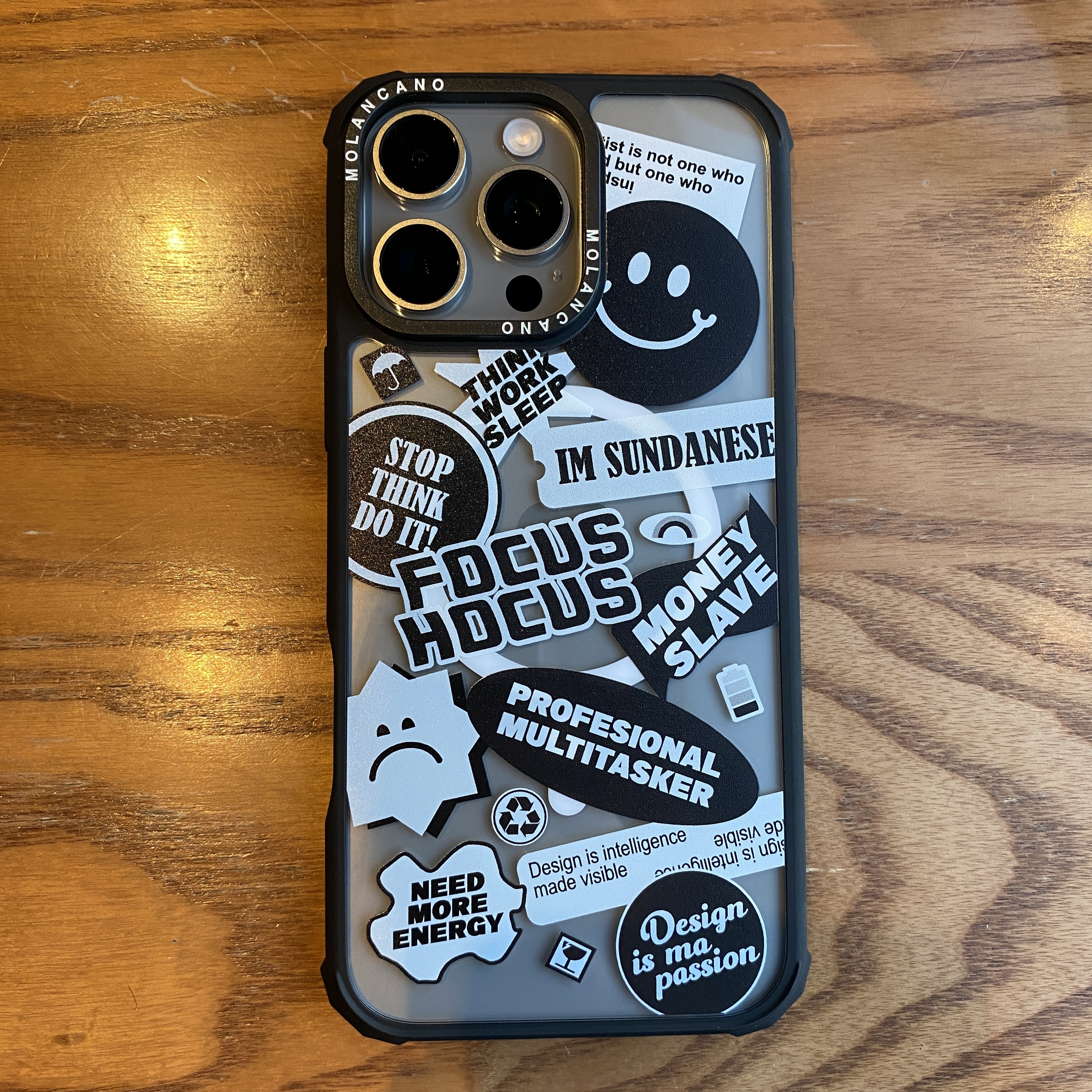 이 케이스의 가장 큰 매력은 바로 **독특한 스티커 디자인**이에요!